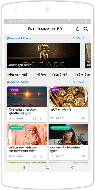 Entertainment BD is an android based free application which has designed with an elegant design to deliver all the best, top, hot and hit entertainment based news. In this application user will get all the latest entertainment, lifestyle, travel, recipe and many others type content.