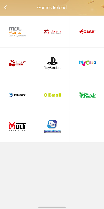 Garena, aCash, PlayStation, MOLPoint 등 좋아하는 게임에 현금을 추가하십시오.