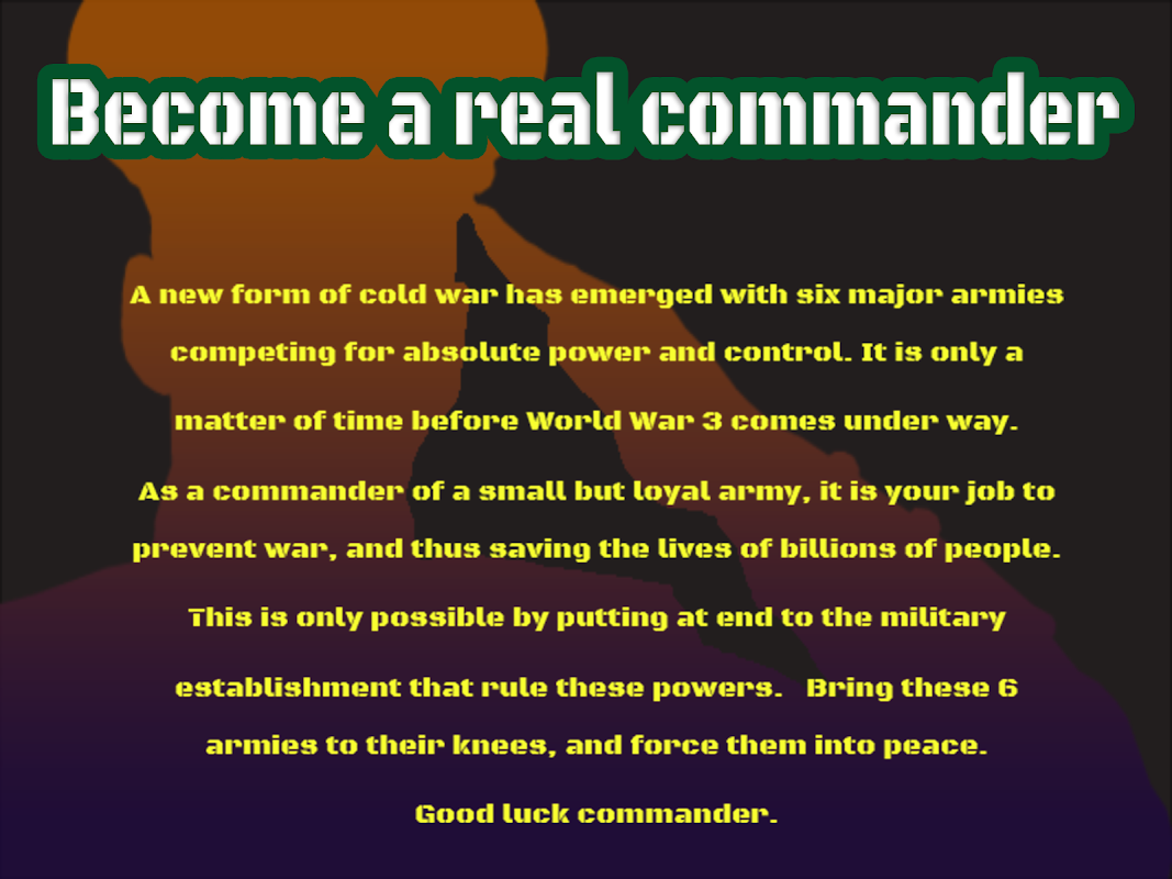 작지만 충성스러운 군대의 지휘관으로서 전쟁을 방지하고 수십억 명의 사람들의 생명을 구하는 것이 당신 직업입니다. 이것은 이러한 권한을 지배하는 군사 시설에 종착역을 두는 것만 가능합니다.