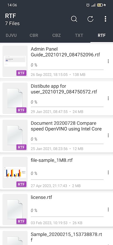 🔹 Book Reader - EBook 리더는 Office 문서 형식 ODT, RTF를 지원합니다.