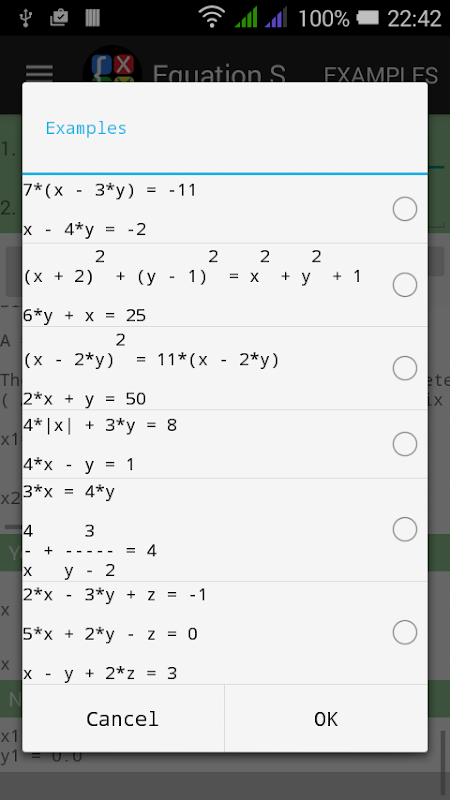 [✔] Examples of systems of equations