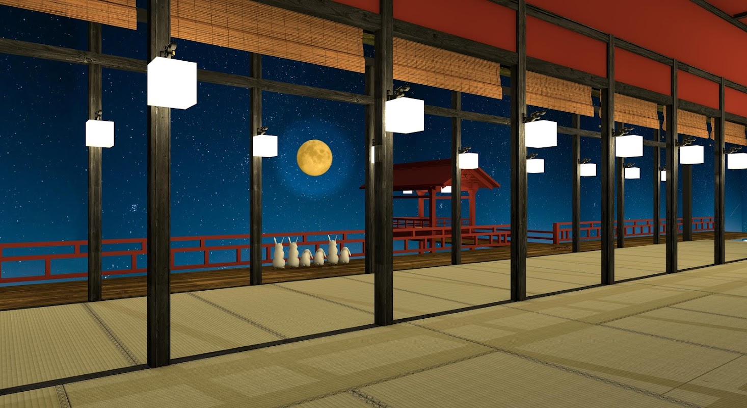 You are staying the house with a Otsukimi Rabbit and shy Bamboo Princess.