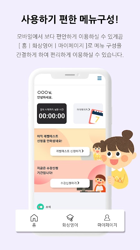 ㆍ무료 레벨테스트로 화상영어 수업을 체험해보세요.