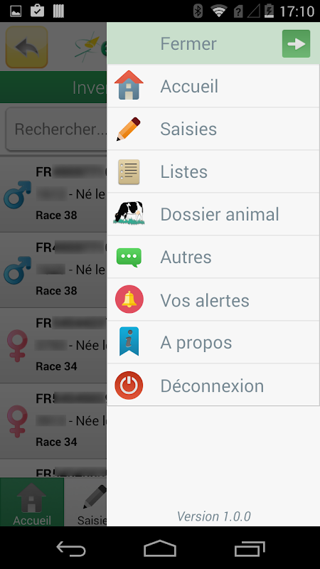 사용자의 조작은 인터넷에 연결하는 네트워크가 충분하지 않기 때문에, 기록하고 언제든지 데이터를 볼 수 있도록 설계된 애플리케이션 EstElevage.