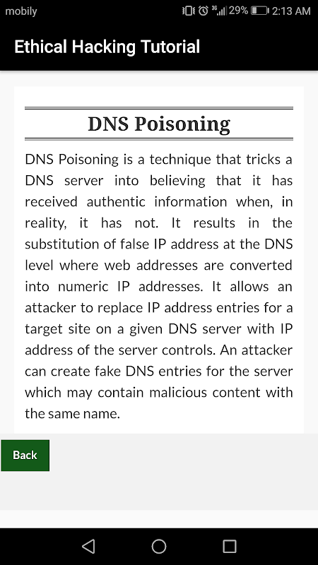 This free Ethical Hacking Tutorial App Contains below topics: