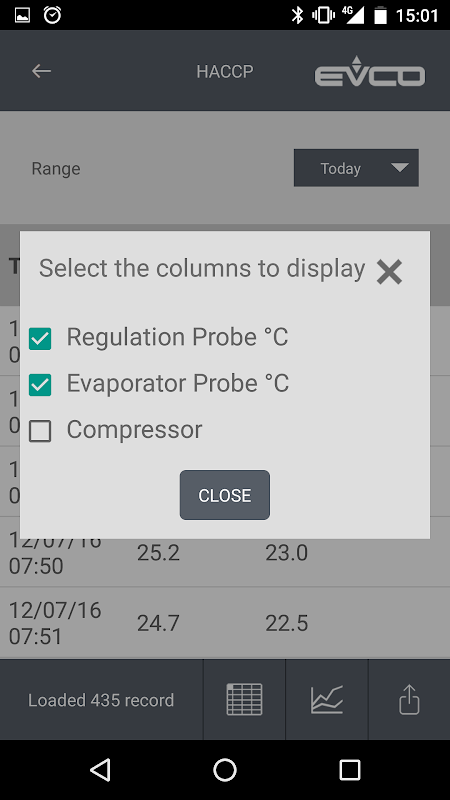 저전력 블루투스를 통해 호환 EVCO 컨트롤러에 연결