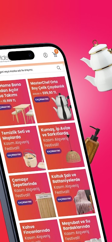 보완 가구, 가정 장식, 가정용 섬유 제품, 필수 식기, 주방 용품 등이 Evidea Android 모바일 애플리케이션에서 여러분을 기다리고 있습니다.