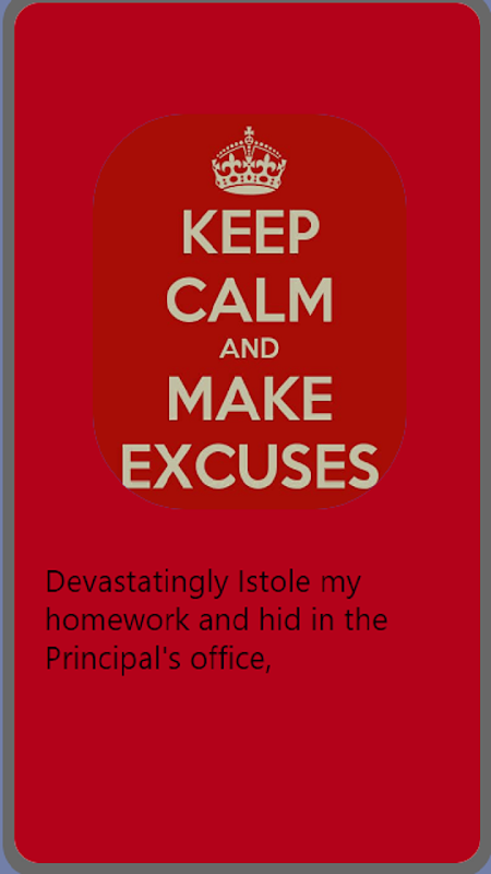 이 APP에서는 다양한 변명을 볼 수 있습니다. 사람이 자신의 임무를 수행하지 않은 이유에 대한 변명을 생성하는 데 사용됩니다. 이 APP은 변명에 대해 자세히 알아보는 것입니다 ;-)