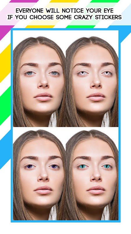 Have you ever wanted to try out a different "eye color" and see how you would look with "blue eyes" 🧿 or some colorful cosmetic contact lenses? Then download this "Eye Color Changer That Makes Your Eyes Look Real" that has all shapes, sizes and colors of eye stickers. Whether you want to use this "eye color changer" to try out green eyes, or some popular anime eyes like "sharingan eyes", this eye photo editor has everything you need and more! So try it out and "change eye color" to see how you look when you put on some colored eye contacts, or use it as a red eyes removal app 👁️ if you end up with red eyes when someone uses flash when taking pictures.