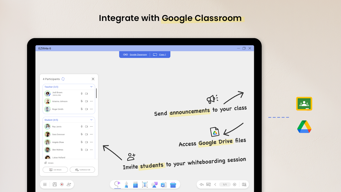 클라우드 화이트보드를 활성화하고 BenQ 보드의 EZWrite와 함께 사용하여 수업이나 회의에 참여하면 자리를 떠나지 않고도 참여하고 아이디어를 공유할 수 있습니다.