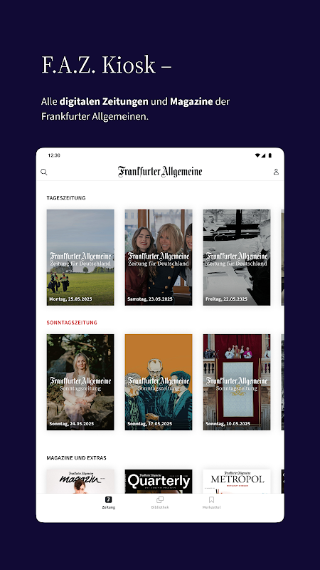 이 앱에서는 프랑크푸르트 알게마이네 지역의 모든 신문과 잡지를 디지털 버전으로 이용하실 수 있습니다.