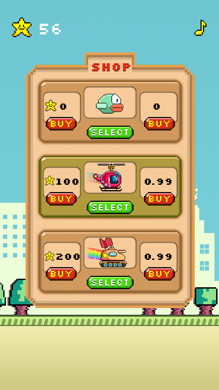 Collect stars to buy other beautiful Flappy Tanks and Helicopters .