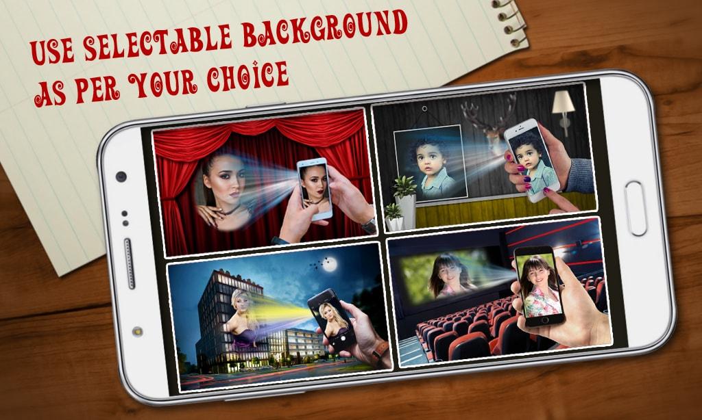 Select Projector frame of your choice and add your photo to create projection image. you can adjust your image to fit into mobile it will give real projection look to your image. you can add saturation to your photo as your choice.