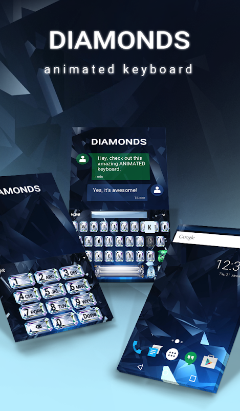 Fancy Diamonds Wallpaper는 Android 휴대폰에 세련되고 새로운 모습을 선사하는 멋진 개인화 앱입니다. Wave의 멋진 배경화면과 키보드 앱은 단 3단계만으로 기기를 개선하는 데 도움이 됩니다.