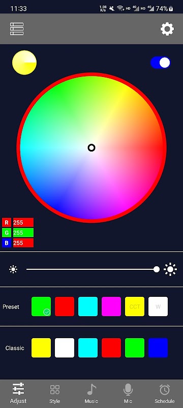 1. 조명의 색상과 밝기를 조절합니다.