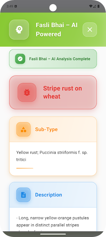 작물 이미지를 촬영하거나 업로드하면 Fasli Bhai가 질병, 해충 또는 기타 문제를 감지합니다. 즉각적인 안내, 전문가 조언 및 작물에 맞는 처리 솔루션을 받아보세요.