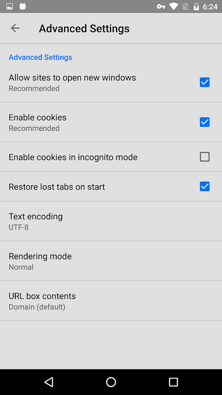 ● Privacy - Use Incognito Mode to browse without leaving a footprint, download Orbot and turn on TOR proxy support to mask your identify and location, use StartPage or DuckDuckGo for your search engine, or disable settings that you think leave you at risk. Whatever your concern, Lightning will try to help.