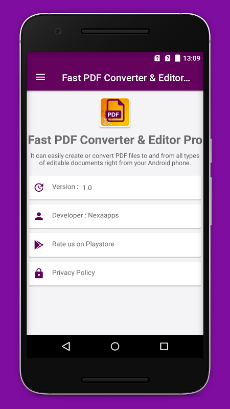 Fast PDF Converter & Editor Pro is an easy to use application to convert Images to PDF. This is basically an image to PDF Converter. The simplicity of this app makes it an ultimate PDF Converter for your device.