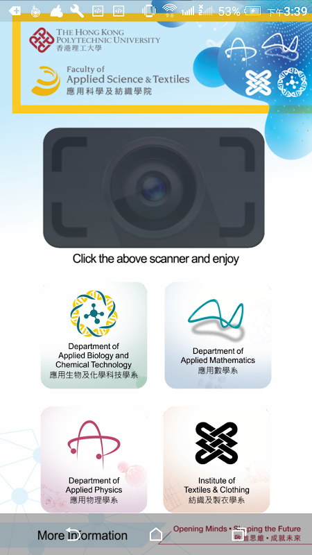 응용 과학 및 직물의 홍콩 폴리 테크닉 대학의 학부는 학교 생활을 경험하고 교수진이 제공하는 것에 대해 배울 수있는 당신의 전형적인 모바일 응용 프로그램입니다.