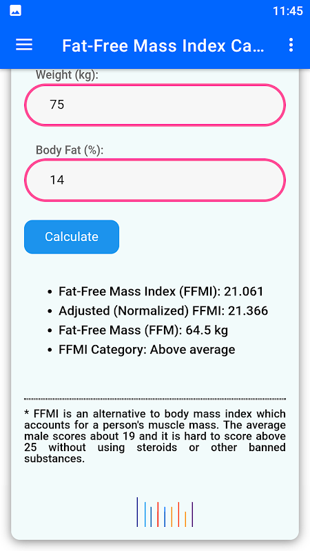 지방, 체중, 키를 기준으로 FFMI 카테고리를 사용하여 질량 지수를 계산합니다.