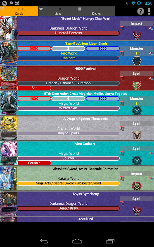 당신이 거래를 원하거나 당신이 원하는대로 각각의 세계에 대한, 또는 카드에 가장 적합한 카드 목록을 작성