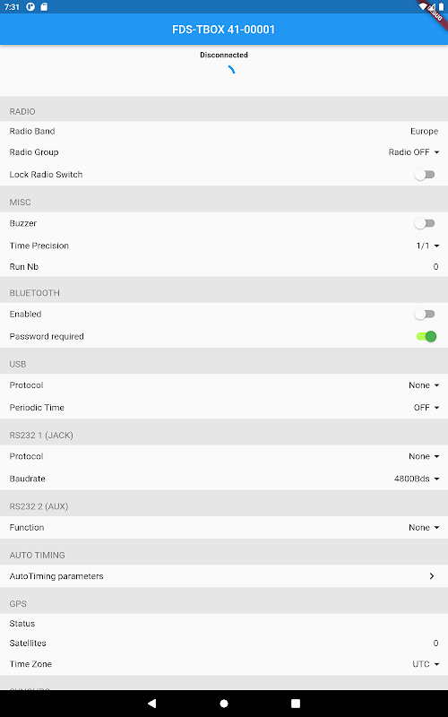 TBox-Setup은 FDS-Timing에서 제조한 모든 TBox 모델을 Bluetooth를 통해 빠르게 구성하고 테스트할 수 있는 도구입니다.
