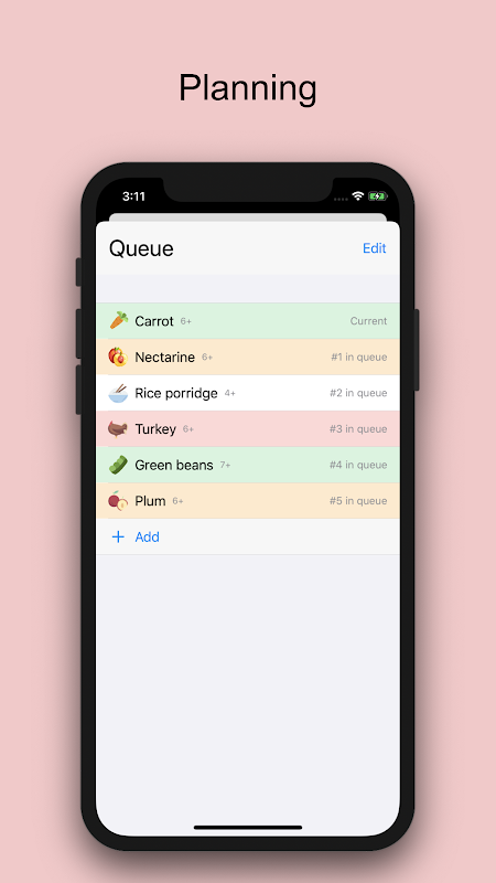- plan the introduction of complementary foods, composing and changing the queue of products from different categories;