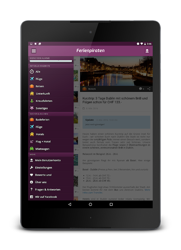 Du brauchst Ferien? Suchst du nach günstigen Flügen, Pauschalreisen, Hotels oder Gutscheinen? Dann bist du hier richtig! Du bekommst die besten Schnäppchen der Ferienpiraten direkt auf dein Smartphone und sparst jede Menge Geld bei deinem nächsten Urlaub! In der App kannst du ganz bequem unsere besten Reiseschnäppchen durchstöbern. Stell einfach deinen persönlichen Reisealarm ein und du bekommst passende Angebote als einer der ersten sobald wir sie gefunden haben.