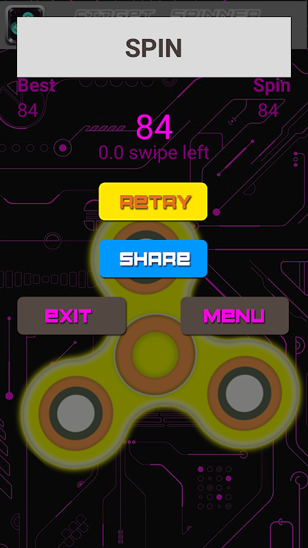 You have 4 swipes to set the best spin you can. Wait for it to stop and sweep the sweet rewards! Select the spinner from 10+ awesome Glowing spinners, compete with your friends and beat the records!