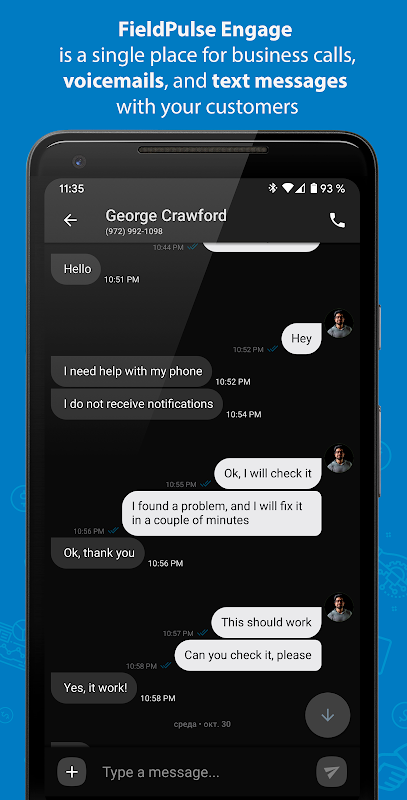 Take FieldPulse with you on the go with the FieldPulse Android app. Run your service business from anywhere; easily manage customers, schedule jobs, dispatch team members, and send out invoices and estimates. Keep a pulse on your business with real time status updates and full traceability. Whether a company of 1 or 100, FieldPulse helps keep your service business organized and running smoothly.