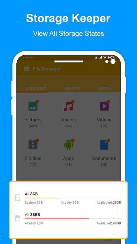 사용하기 매우 쉬운 쉬운 UI로 인해 무료로 빠르고 완벽하게 기능합니다. 그것은 당신의 안드로이드 장치에 대한 마지막 단어 파일 관리자입니다. 파일 전송, 문서 관리 및 파일 액세스에 도움이 됩니다. 빠른 검색, 열기, 이동, 삭제 및 파일 공유와 같은 멋진 기능을 많이 지원합니다. 당신은 또한 당신의 안드로이드 전화에 얼마나 많은 파일과 앱을 찾을 수 있습니다.