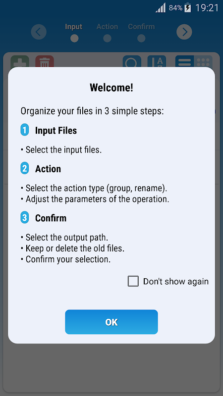 The purpose of the app is to group and rename multiple files at once, in a single operation, based on user's selection of features to apply.