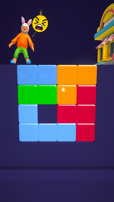 캐릭터가 교차하도록 도와주세요. 블록을 배치하여 간격을 메우세요!
