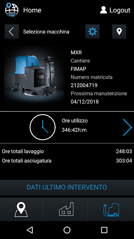Fimap 앱을 사용하면 항상 차량을 제어 할 수 있습니다. FFM-Fimap Fleet Management 서비스는 기계에서 전송 된 데이터를 수집하여 Fimap 앱으로 전송하여 발생하는 모든 사항에 대해 실시간으로 업데이트하므로 서비스를 개선하고 고객에게 적시에 지원을 제공 할 수 있습니다.