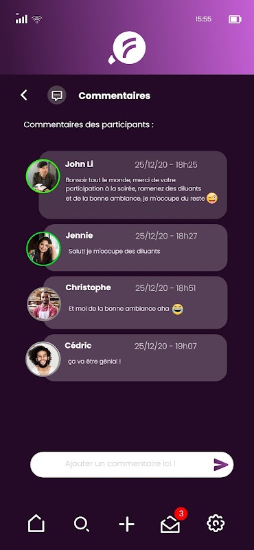 FINDERZ 애플리케이션을 통해 사용자는 파티를 제안할 수 있습니다.