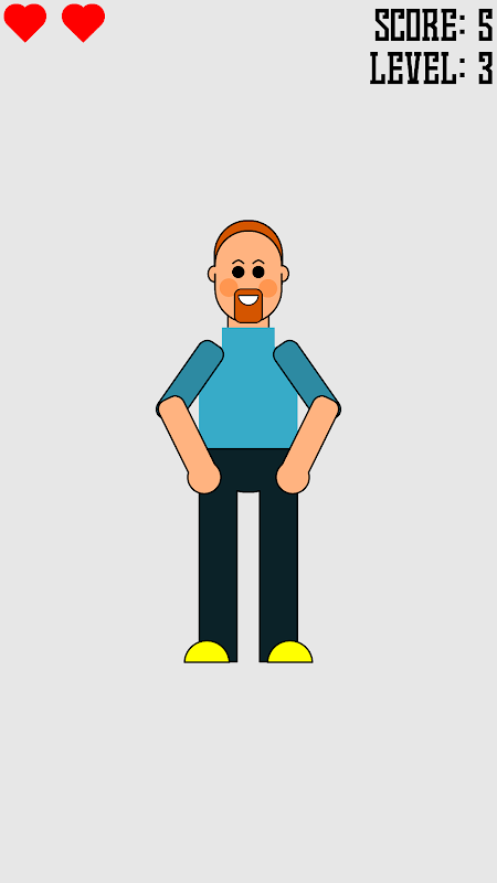 작동하기 쉽습니다. 손녀의 댄스 포즈를 따라하기 위해 손가락을 사용하여 화면의 상단, 왼쪽, 오른쪽, 하단, 왼쪽 하단, 오른쪽 하단, 왼쪽 상단, 오른쪽 상단 부분을 탭하여 할머니와 할아버지를 도와주세요. 할아버지는 손녀의 댄스 포즈를 따라할 수 있는 기회가 3번 있습니다. 할아버지가 손녀의 댄스 포즈를 잘못 따라하면 할아버지는 기회가 0이 남을 때까지 한 번의 기회를 잃고 게임이 끝납니다. 할아버지가 더 많은 댄스 포즈를 따라할수록 더 높은 점수를 얻게 됩니다. 댄스 버그 할아버지의 수가 적을수록 할아버지도 더 높은 점수를 얻게 됩니다. 할머니는 에너지와 좋은 기억력으로 할아버지를 젊게 도와줄 것입니다. 춤을 시뮬레이션하기 위해 소녀의 포즈를 따르십시오.