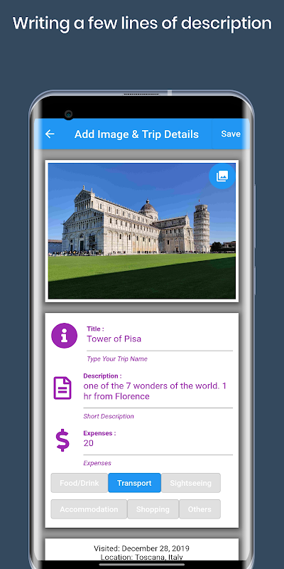 - 이름, 간단한 설명 및 비용과 같은 여행 세부 정보 추가