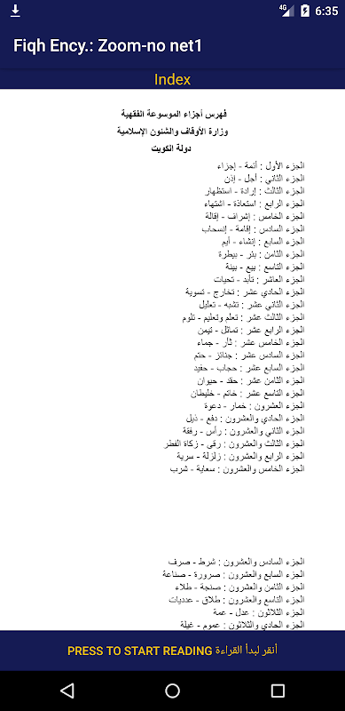 이 애플리케이션은 쿠웨이트 정부에 의해 또는 쿠웨이트 정부를 대신하여 개발되지 않았습니다. 사용된 재료는 그대로이며 변경되지 않았습니다. 백과사전 내용의 색인만 애플리케이션에 추가되었습니다. 이 신청서에는 쿠웨이트 Awqaf 이슬람부에서 발행한 Awqaf 백과사전 1~15부, 총 45부가 포함되어 있습니다. 여기서는 인터넷 없이도 글꼴을 확대할 수 있는 기능을 3부분(애플리케이션)으로 나누어 보았습니다. 개인정보 보호정책은 다음과 같습니다.