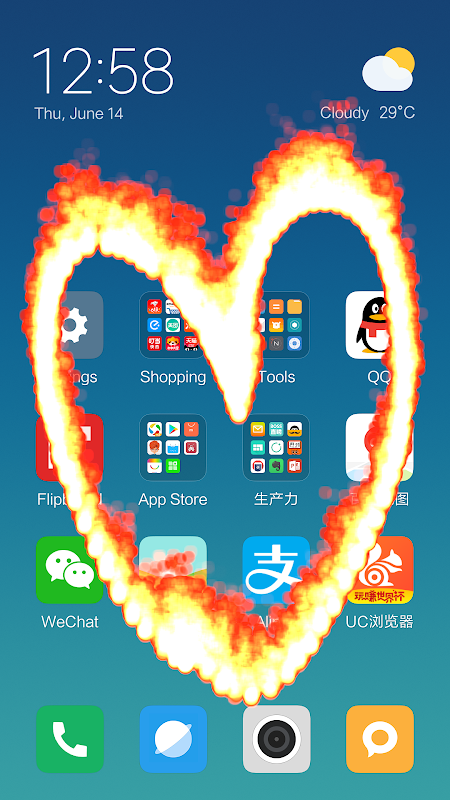휴대 전화 화면에서 아름다운 불의 화상