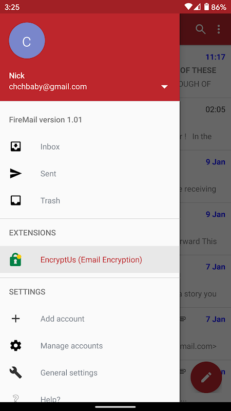 FireMail은 모바일 용 이메일 클라이언트이며 전자 메일 암호화를위한 EncryptUs를 포함합니다