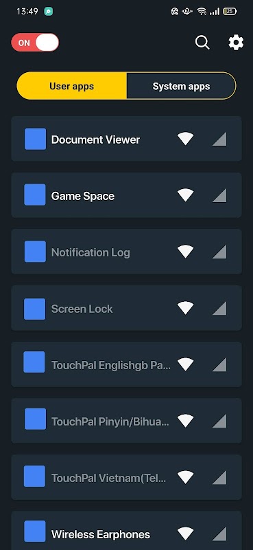- 사용자는 앱이 인터넷에 액세스하는 것을 허용/차단할 수 있으며, 이 솔루션의 기술은 인터넷 액세스를 제어하기 위해 VpnService를 사용합니다.