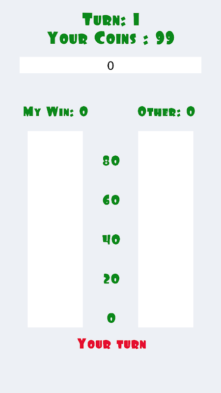 *On each turn, each player bets coins. Whoever bets more will win a turn.