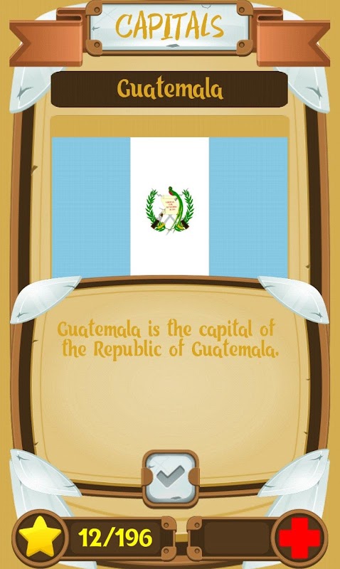 Флаги, Гербы, Столицы - это викторина, которая поможет Вам проверить свои знания и узнать новое. База из 196 ныне известных флагов, гербов и столиц не даст вам заскучать. Попробуйте достигнуть максимального результата в каждом из трех аспектов игры и с уверенностью скажите: "Я знаю больше всех, я знаю все!". Если сразу что-то не получается, не опускайте руки. Игра подходит, как опытным знатокам географии, так и новичкам. Новичок получит уйму знаний, и простой способ в виде игры выучить флаги, гербы и столицы. После не правильного ответа будет появляться пояснение, которое поможет легче запомнить ранее неизвестный флаг, герб или столицу. Любите географию? Любите символику государств? Хотите узнать что-то новое? Ищите подтверждение своему непревзойденному уму? Тогда наша игра для Вас!
