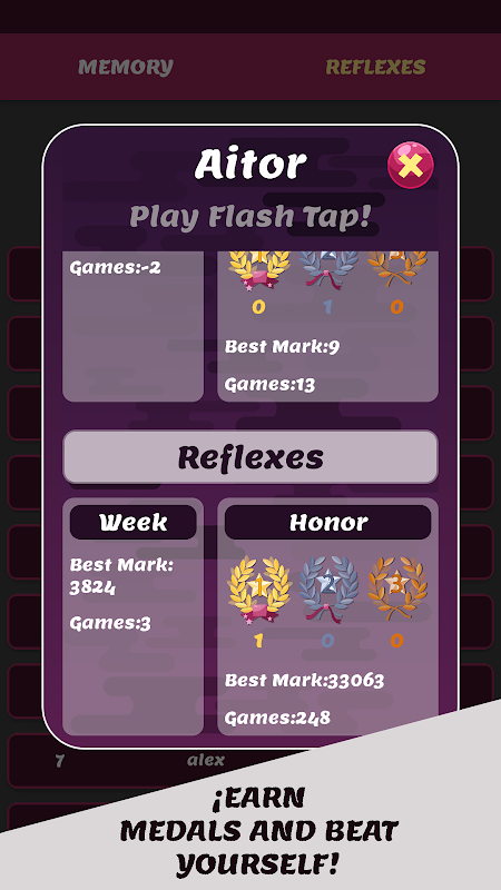 Check your statistics and try to reach No. 1 among your friends and everyone in the game of reflexes and memory of the moment!