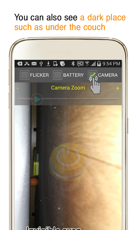 카메라 보기와 줌 돋보기 기능을 추가해 카메라 화면을 보면서 플래시를 비출수 있습니다.
