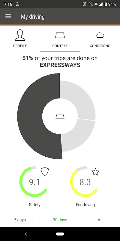 응용 프로그램은 백그라운드에서 실행되며 자동으로 타고의 시작과 끝을 감지합니다. 그 결과, 스마트 폰 아무 조작은 운전하는 동안하지해야합니다.