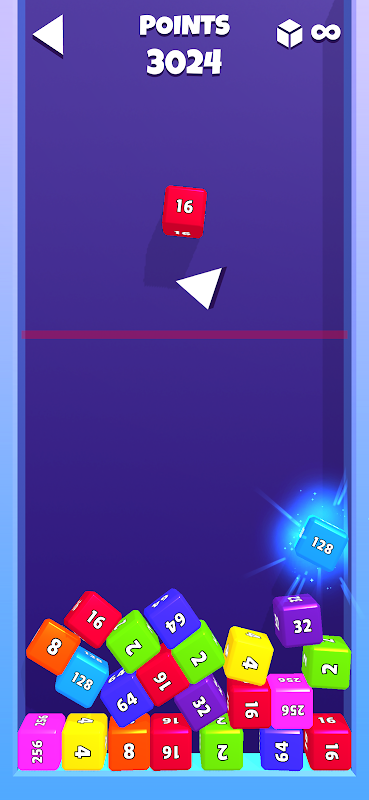 Cubes with the same value and color combine to form a cube with a 2x higher value.