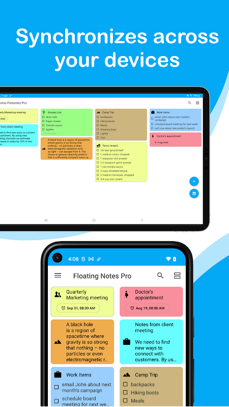 다른 앱을 사용하는 동안 계속 표시되도록 메모를 작성하세요. 작업에 방해가 되지 않도록 모든 메모를 항상 가까이에 두십시오.