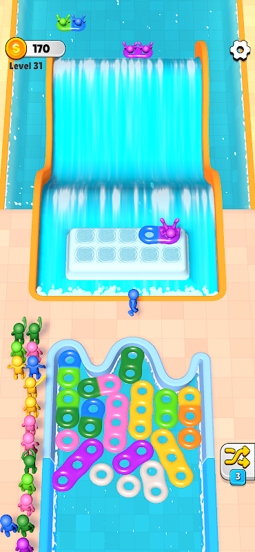 같은 색깔의 스틱맨이 줄 맨 앞에 도달하면 서로 어울리는 튜브를 타고 뛰어다닙니다.