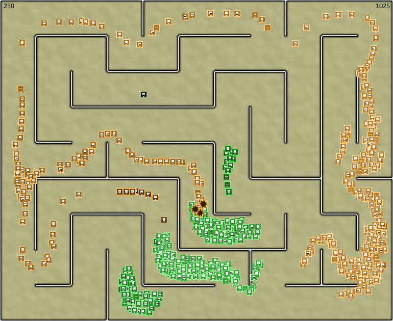 Floxels의 큰 그룹은 밝고 강하다. 작은 그룹은 어둡고 약한. 강력한 Floxels 자신의 색에 약한 사람을 변환합니다. 색상에 Floxels의 모든 변환하려고합니다.
